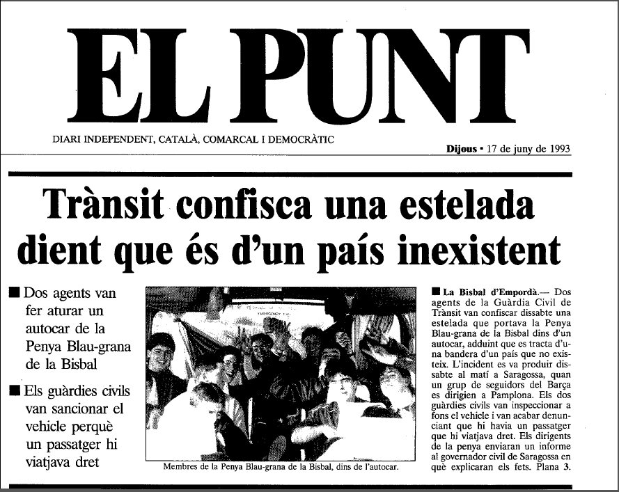Fora dels estadis, l'estelada també és objecte de confiscació, per exemple fa 6 anys, l'any 1993.
